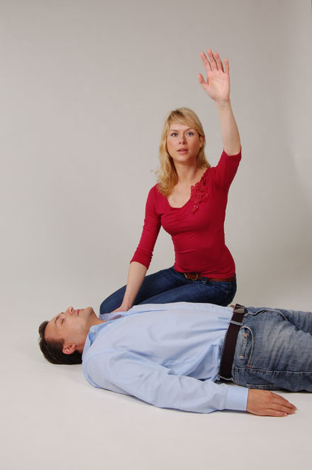 Bei Bewusstlosigkeit laut „Hilfe“ rufen, um Umstehende auf die Notfallsituation aufmerksam zu machen.