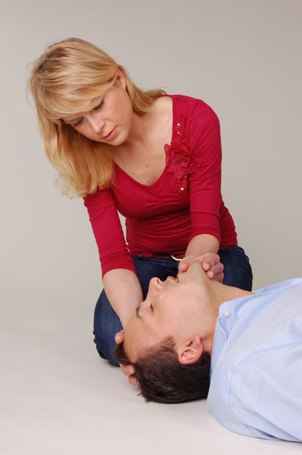 - Atemwege freimachen durch Neigen des Kopfes nach hinten bei gleichzeitigem Anheben des Kinns.